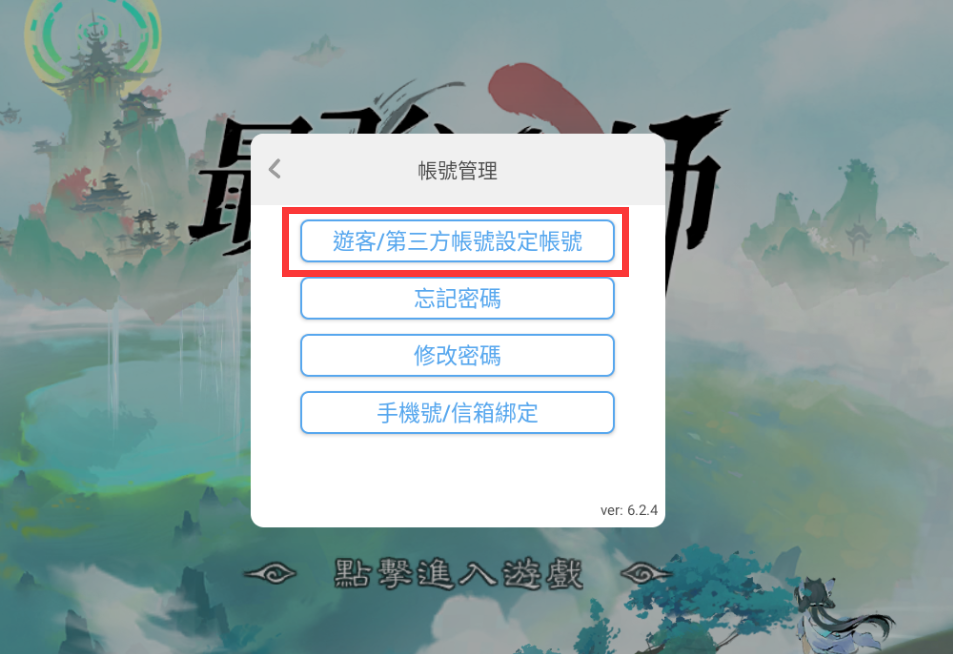步驟1:打開遊戲,進入帳號登錄介面,點擊頁面右上方的【帳號管理】。